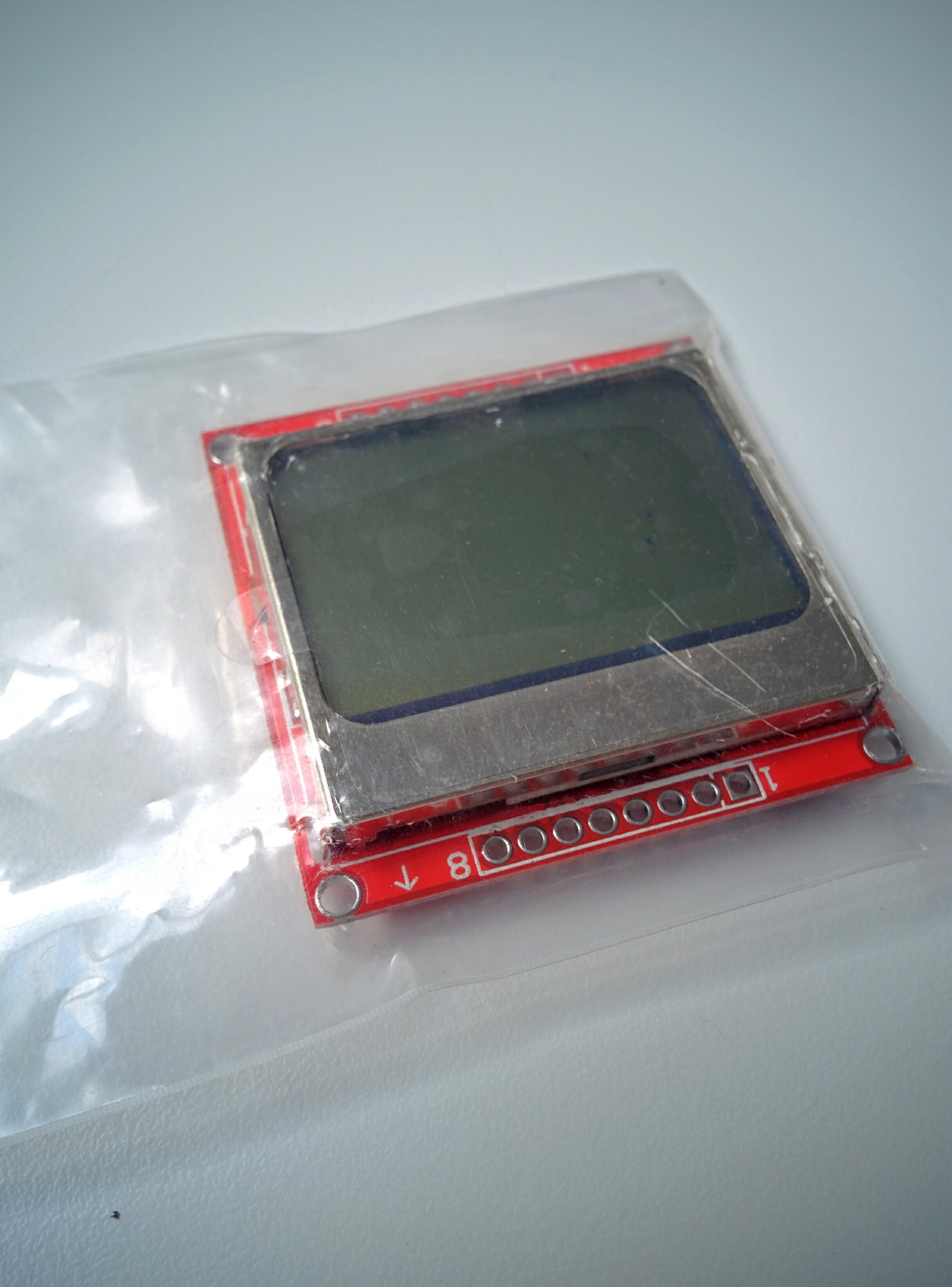 Avant de souder l’écran, il faut placer les deux rangées de huit broches destinées à l’accueillir, puis placer l’écran et scotcher l’ensemble comme sur la photo ci-dessous: